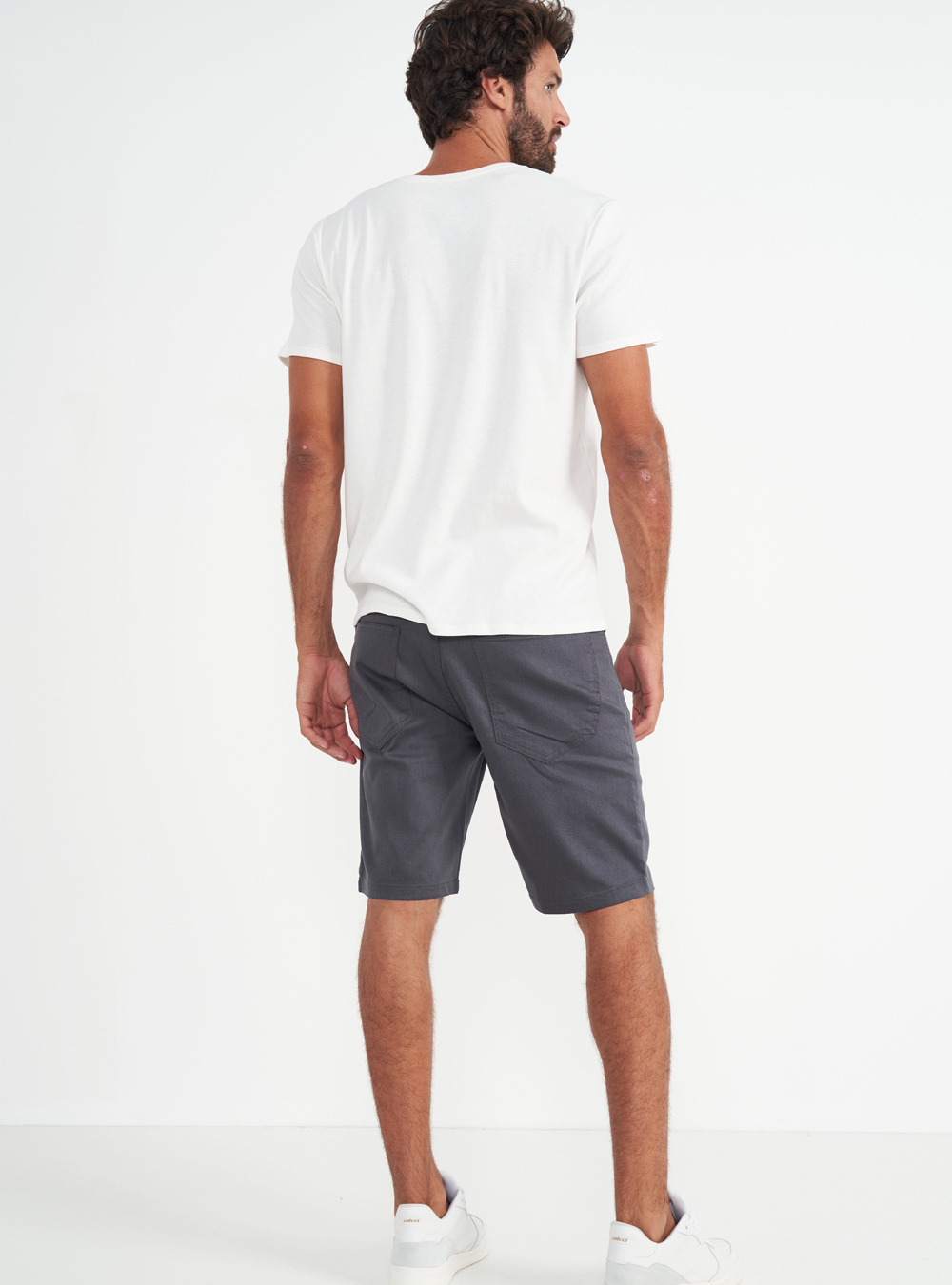 Como a Bermuda Alfaiataria Com Bolsos oferece praticidade, você pode usar uma camiseta lisa para passear ou até mesmo trabalhar.