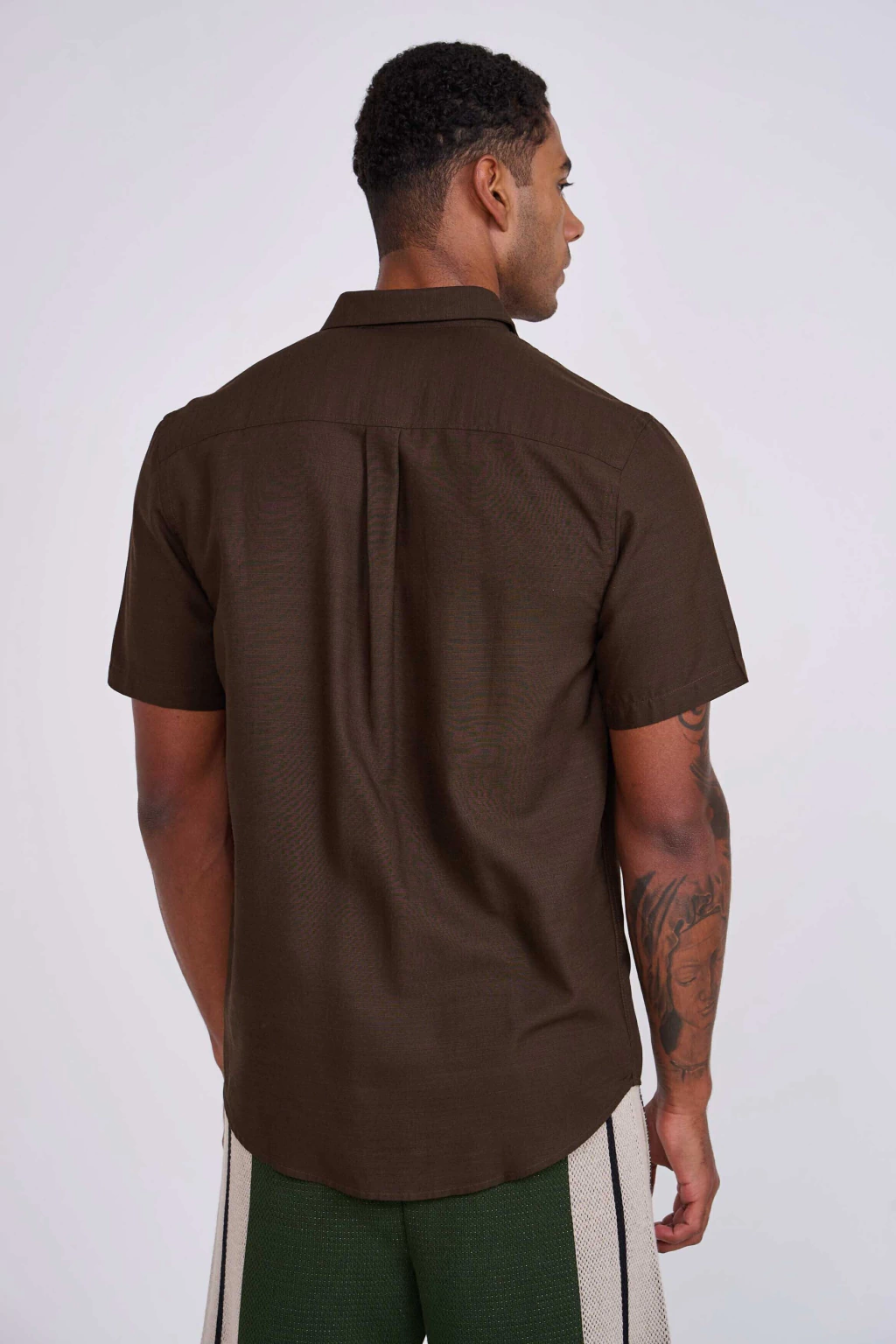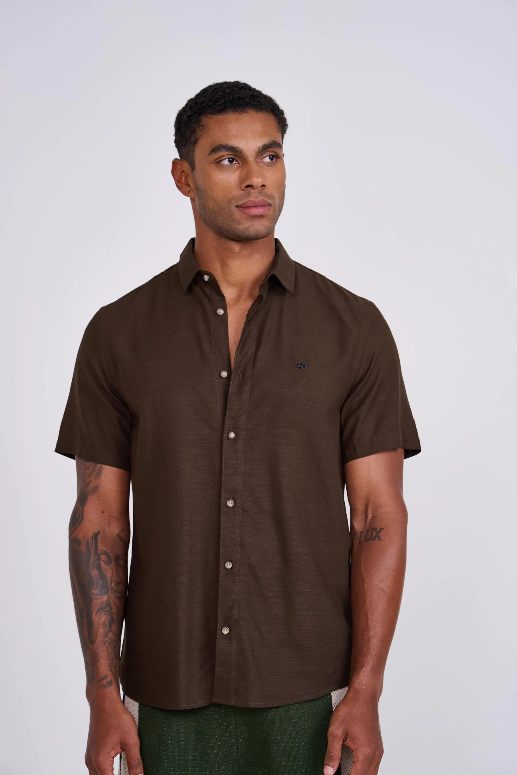 Camisa: Modelo relax com manga curta e corte reto, ideal para compor visuais leves e sofisticados. Apresentada na cor preta, possui fechamento frontal por botões e gola tradicional, oferecendo versatilidade para diferentes ocasiões. O design minimalista valoriza o conforto e a elegância descomplicada da estação.