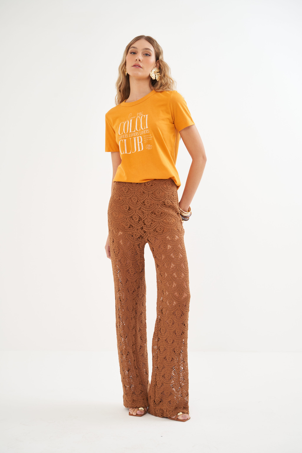 A peça que é puro alto-astral e atitude. Esta t-shirt captura a energia vibrante da coleção Riviera em um tom de laranja solar, a cor da temporada. A estampa exclusiva 'COLCCI LOVERS CLUB' tem uma pegada retrô e descolada, celebrando a nossa comunidade com estilo. Feita em algodão macio, é a combinação perfeita de conforto e design inovador para os seus dias mais radiantes, refletindo a autenticidade e o bem-estar que amamos.