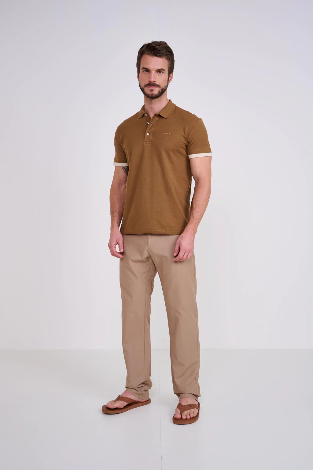 Para um look que exala a leveza e o estilo do verão Colcci, combine esta polo marrom com calças de sarja ou linho em tons claros, como o cáqui da imagem, para um conjunto monocromático casual e moderno. Adicione chinelos de couro ou tênis brancos para um toque despojado e confortável, perfeito para um passeio à beira-mar ou um almoço informal. Para um happy hour, experimente com um jeans de lavagem clara e sapatênis. Esta peça é a base versátil para looks que celebram a autenticidade e o frescor da estação, perfeita para diversas ocasiões, do dia à noite.
