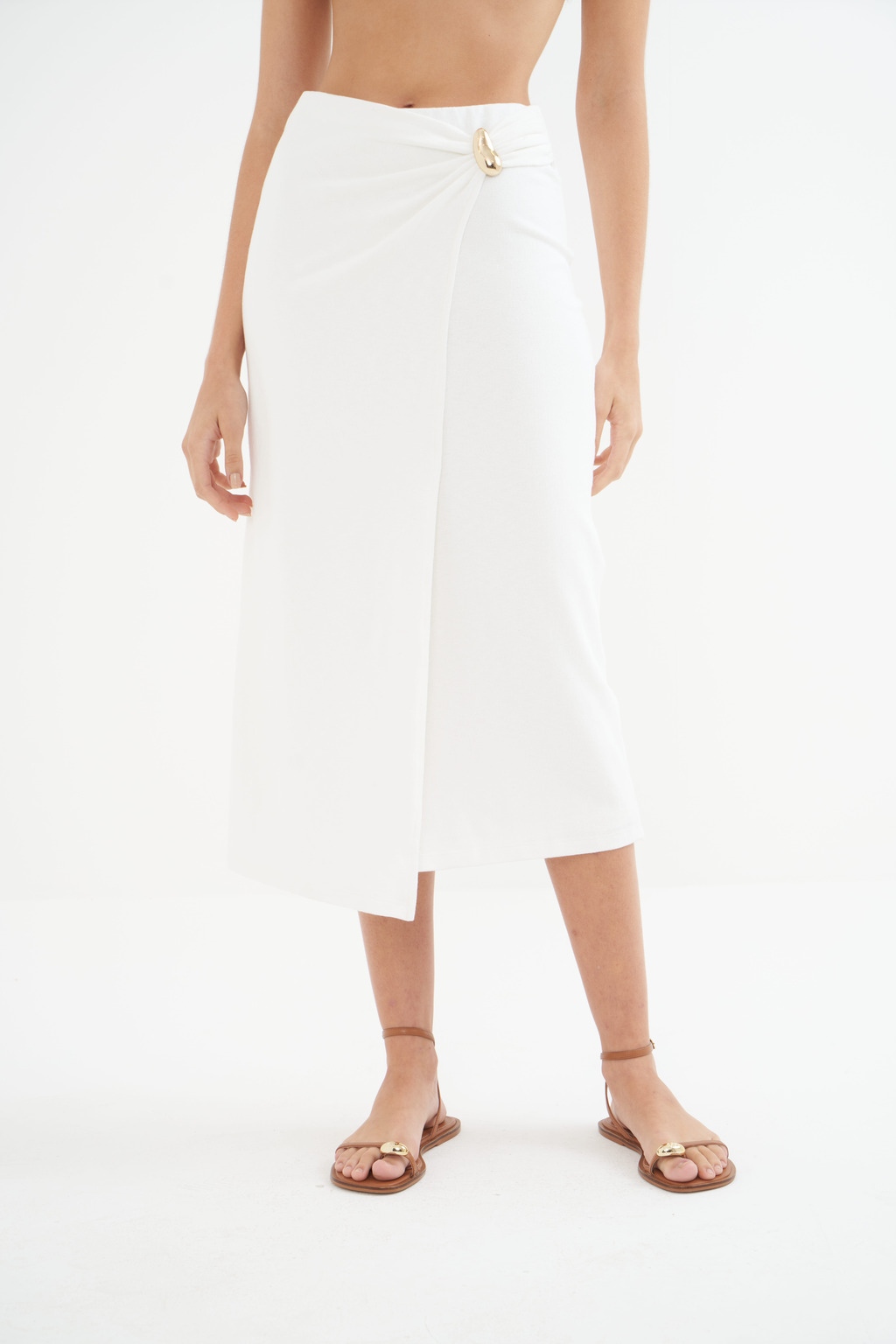 Peça/Look: Saia Midi Com Transpasse – RIVIERA